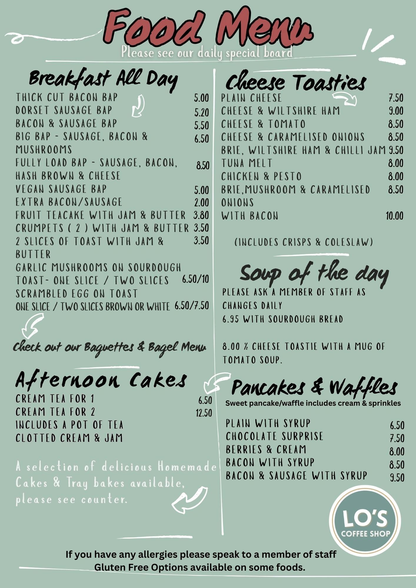 During busy periods or staff shortages we may have to swap our standard menu to a smaller menu to keep things running smoothly as possible ( our kitchen is very small ), you will be notified this at the till when ordering. Thank you for understanding.
